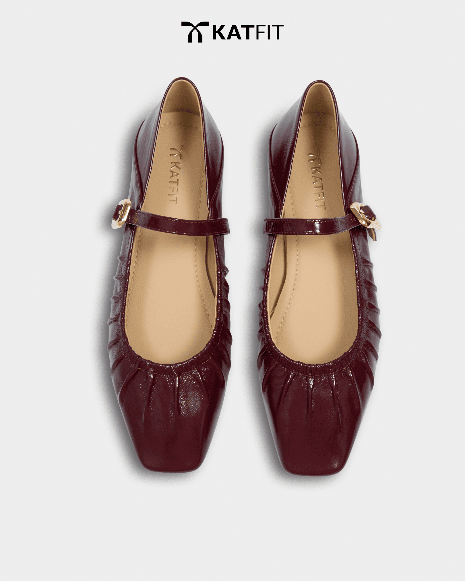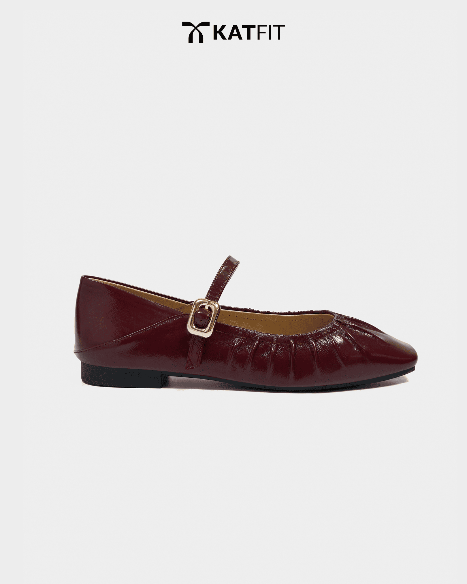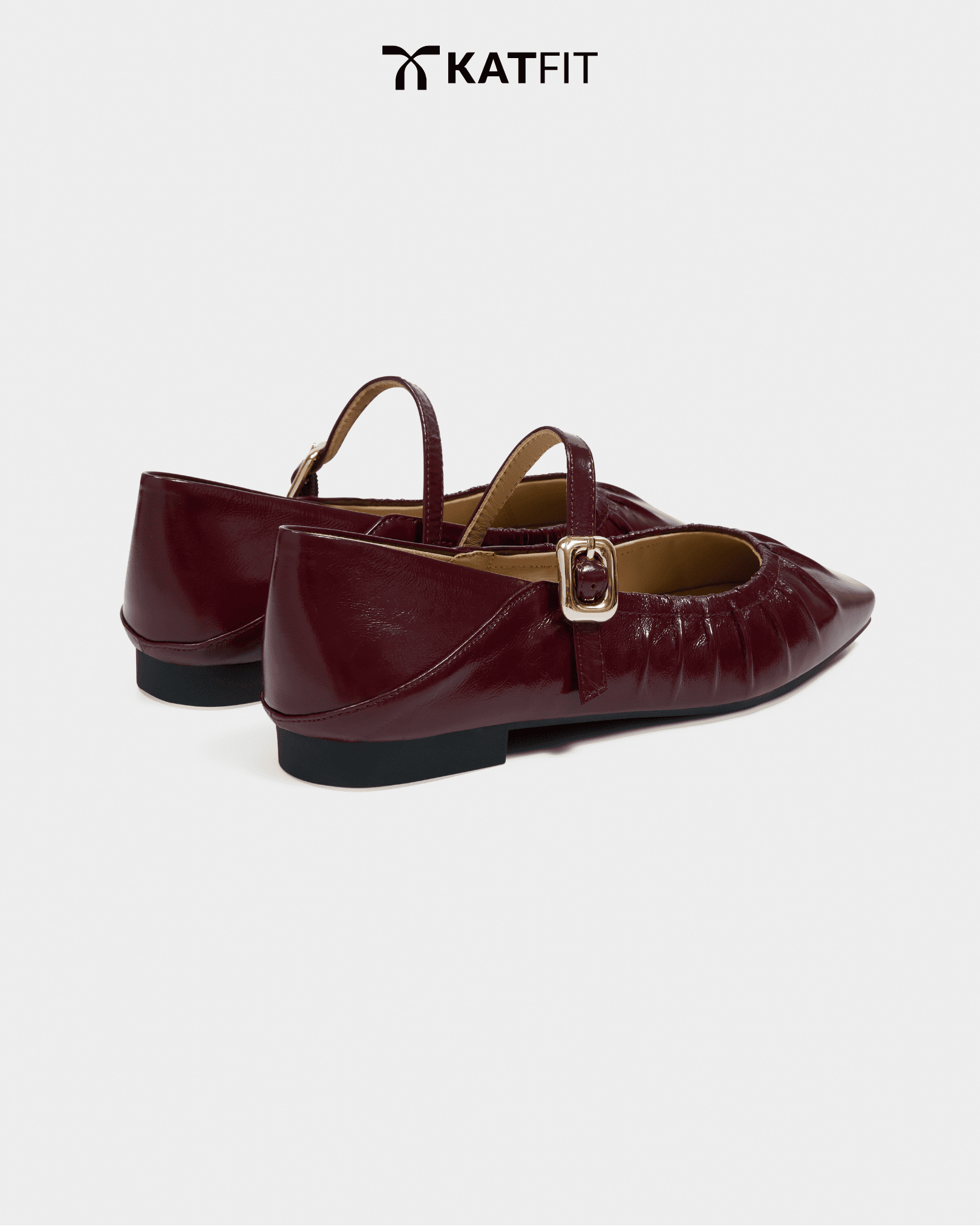 Giày búp bê màu mận Katie da thật – Thanh lịch với thiết kế mũi vuông hiện đại