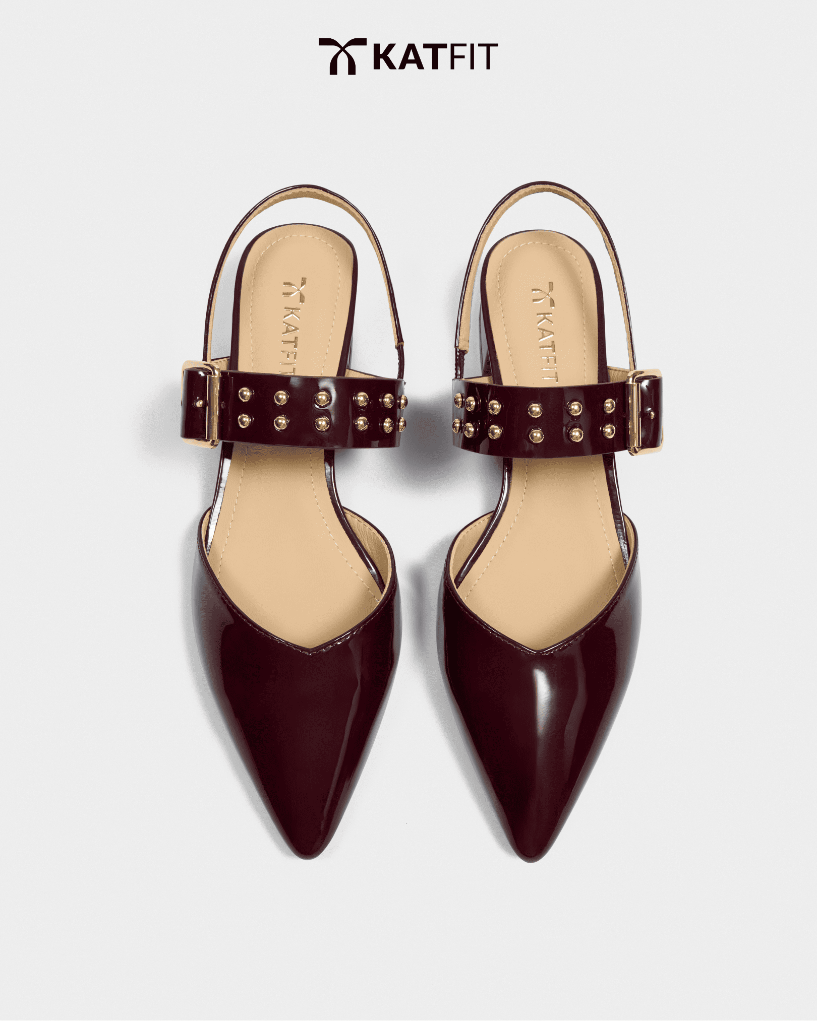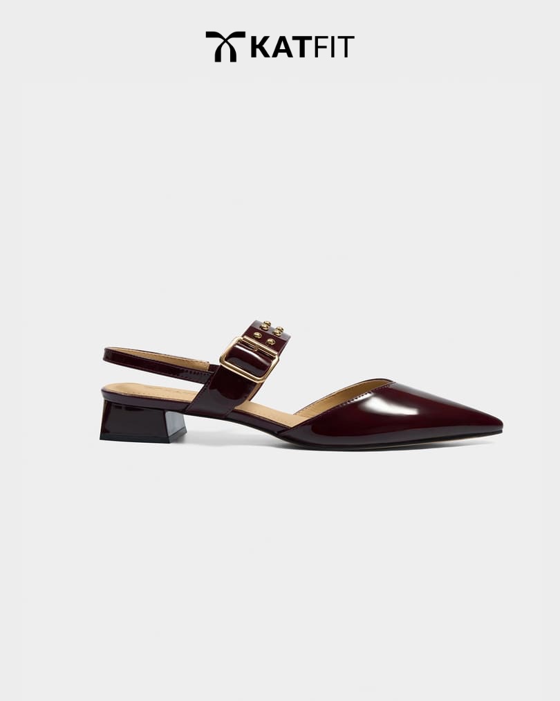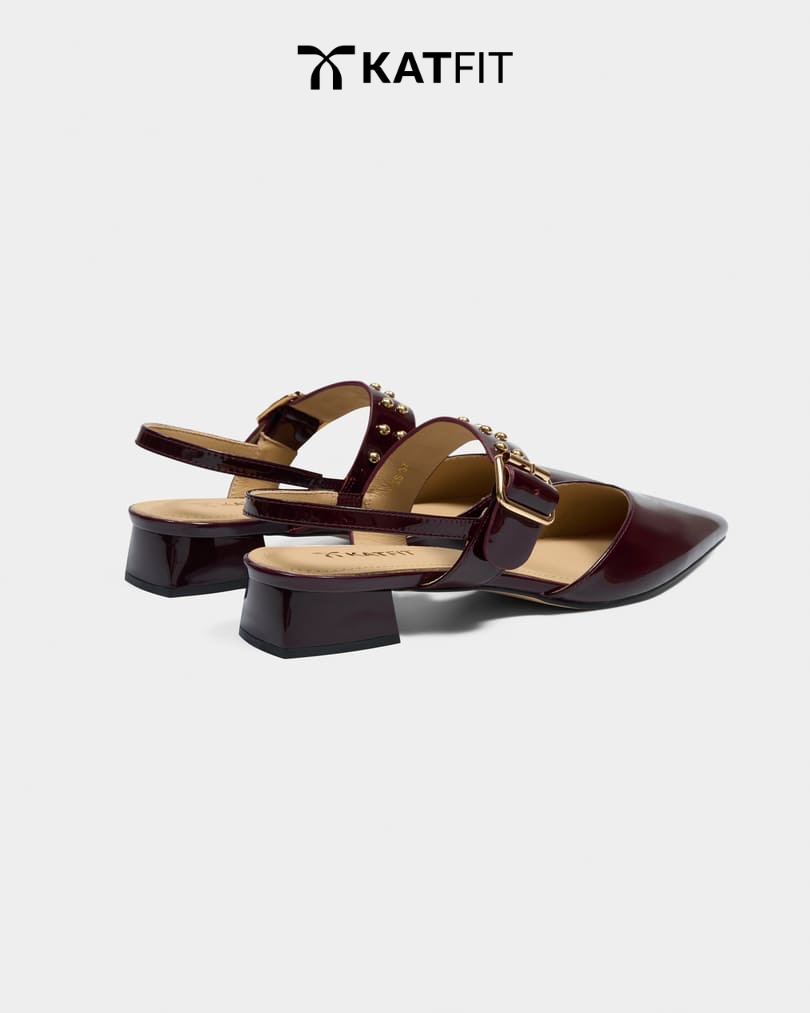 Iris – Giày Slingback hở gót màu mận da thật của KATFIT với mũi nhọn, quai bản to và đinh tán ánh kim nổi bật. Thiết kế giúp bạn luôn tỏa sáng trong mọi hoàn cảnh.