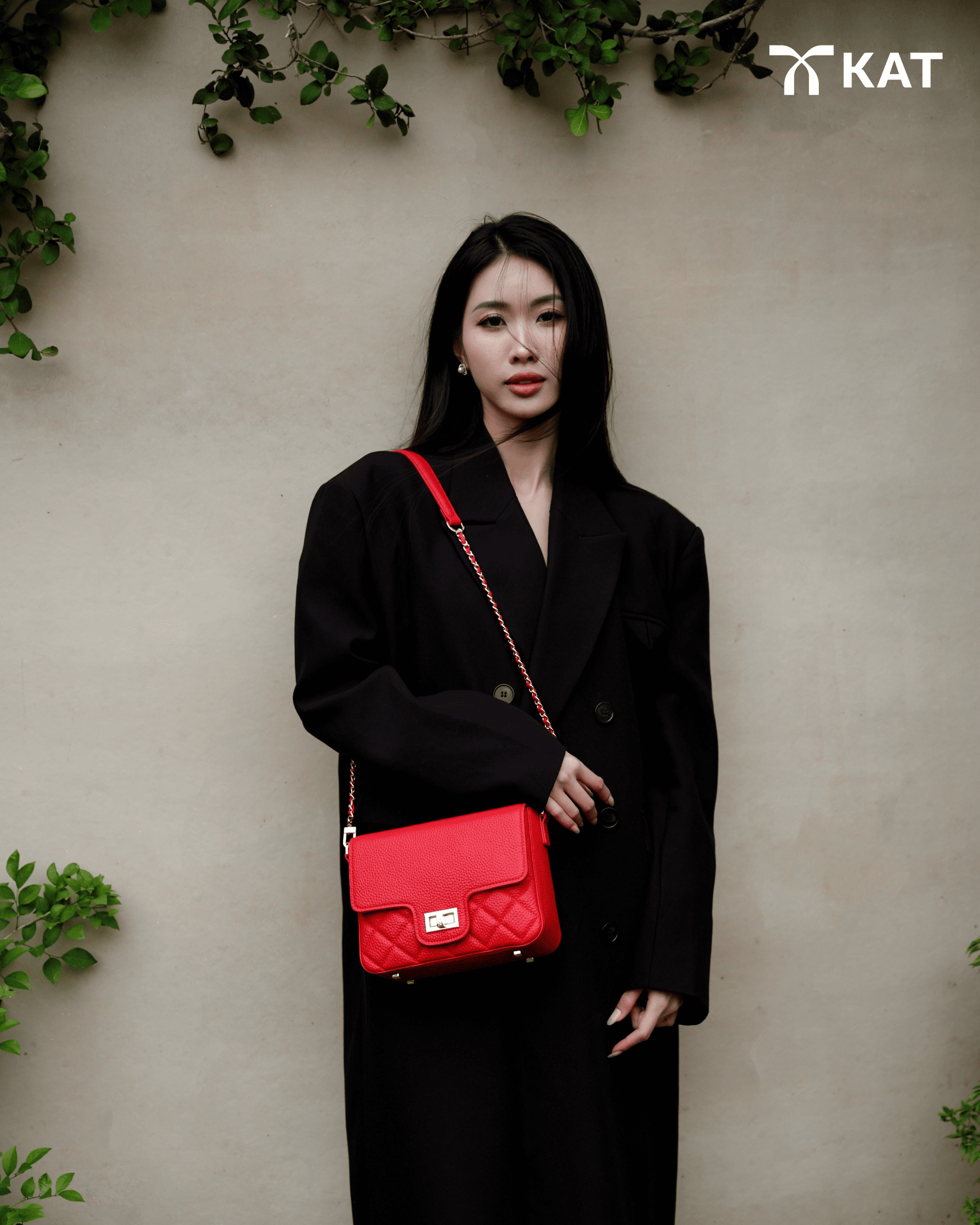 Túi cầm tay màu đỏ Ciara da thật