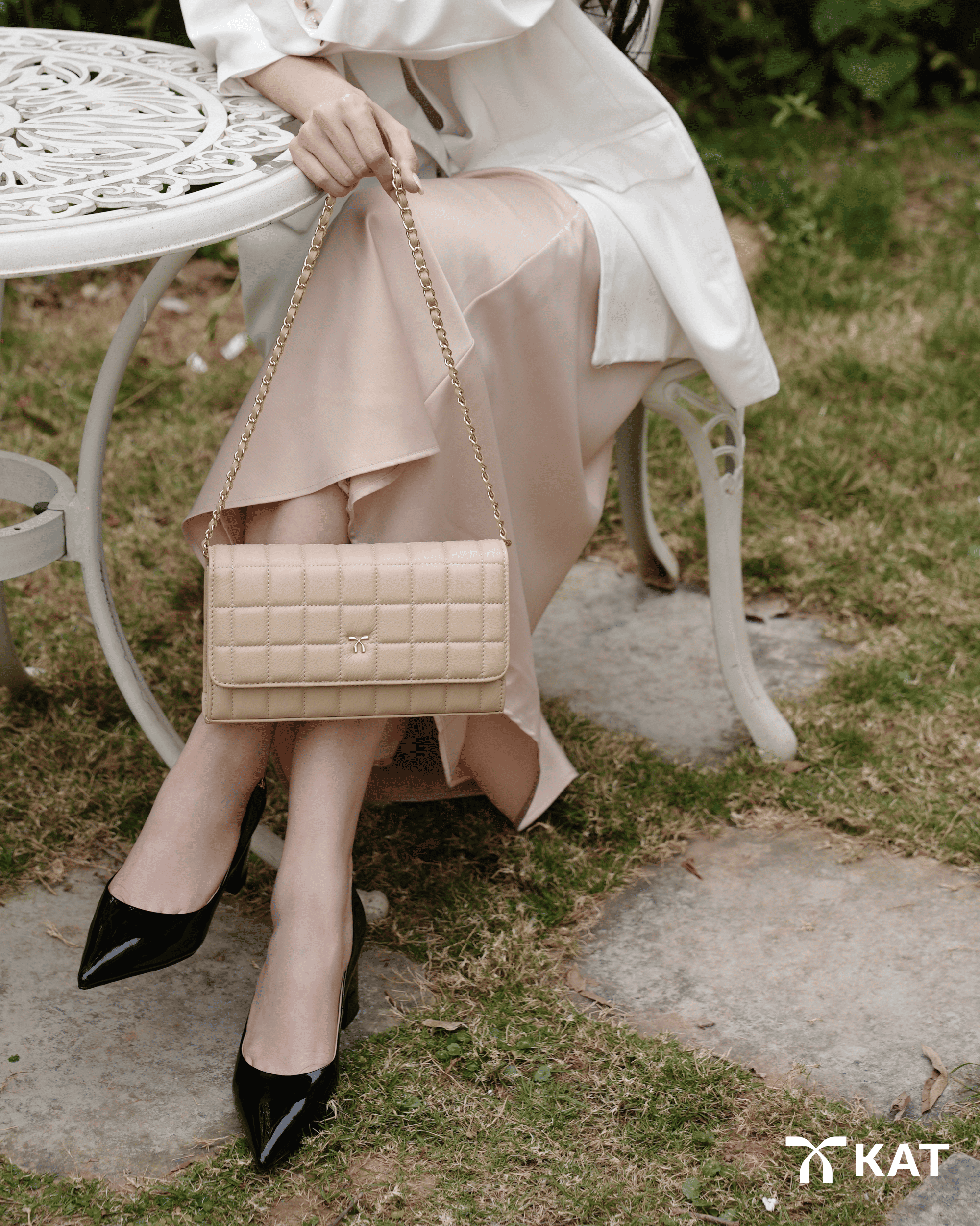 Túi dây xích màu be Stella da thật
