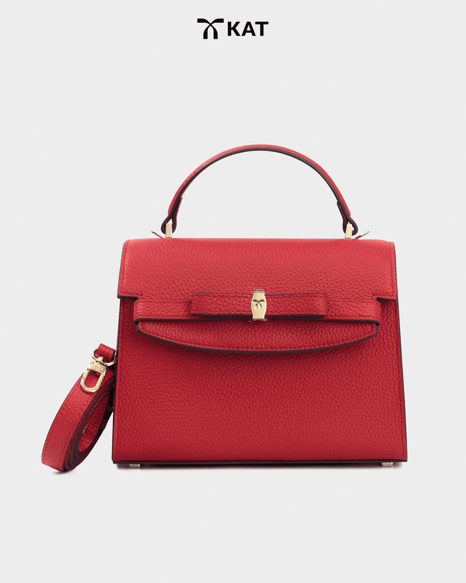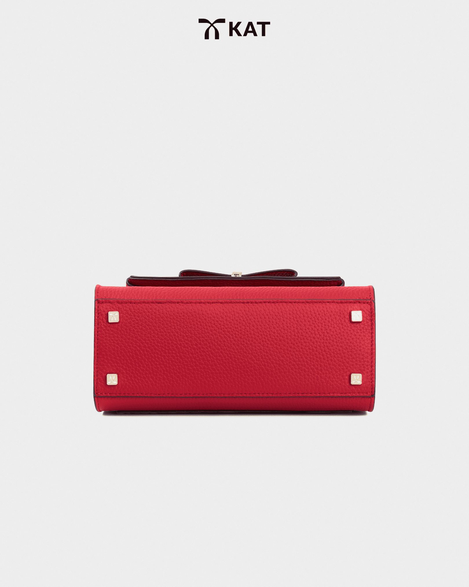 Phần nắp túi được bo cong tạo vòm nhẹ, tạo cảm giác thanh thoát khi nhìn trực diện và giữ dáng ổn định khi cầm tay. Chi tiết nơ nằm trên nền da hạt với bề mặt óng dẻo, chắc tay, giúp chuyển tiếp tự nhiên giữa hình khối và cảm giác sử dụng. Khóa cài ánh kim được hoàn thiện tiết chế, đóng vai trò kết nối các chi tiết, giữ nhịp thiết kế nhất quán và gọn gàng.